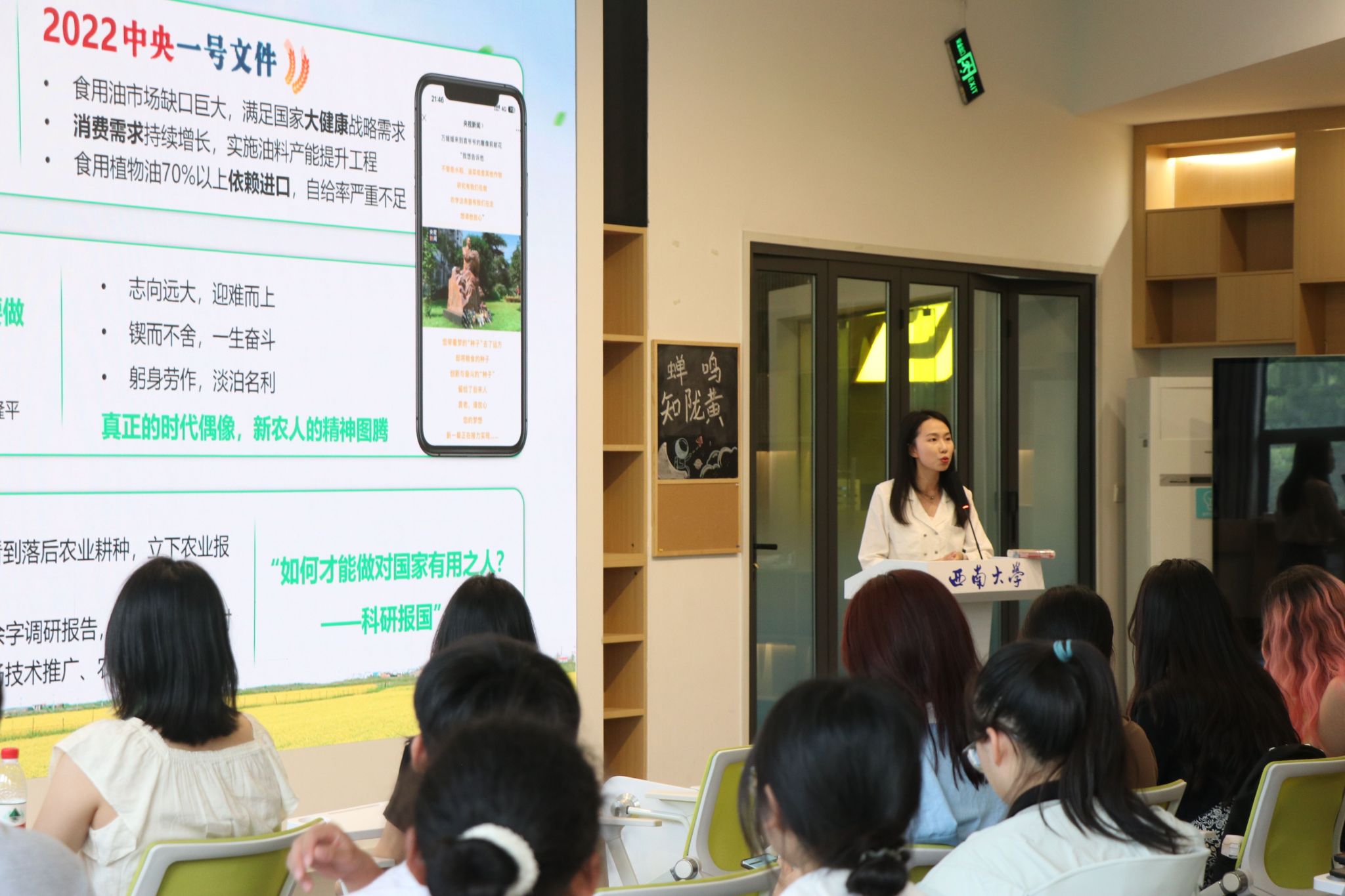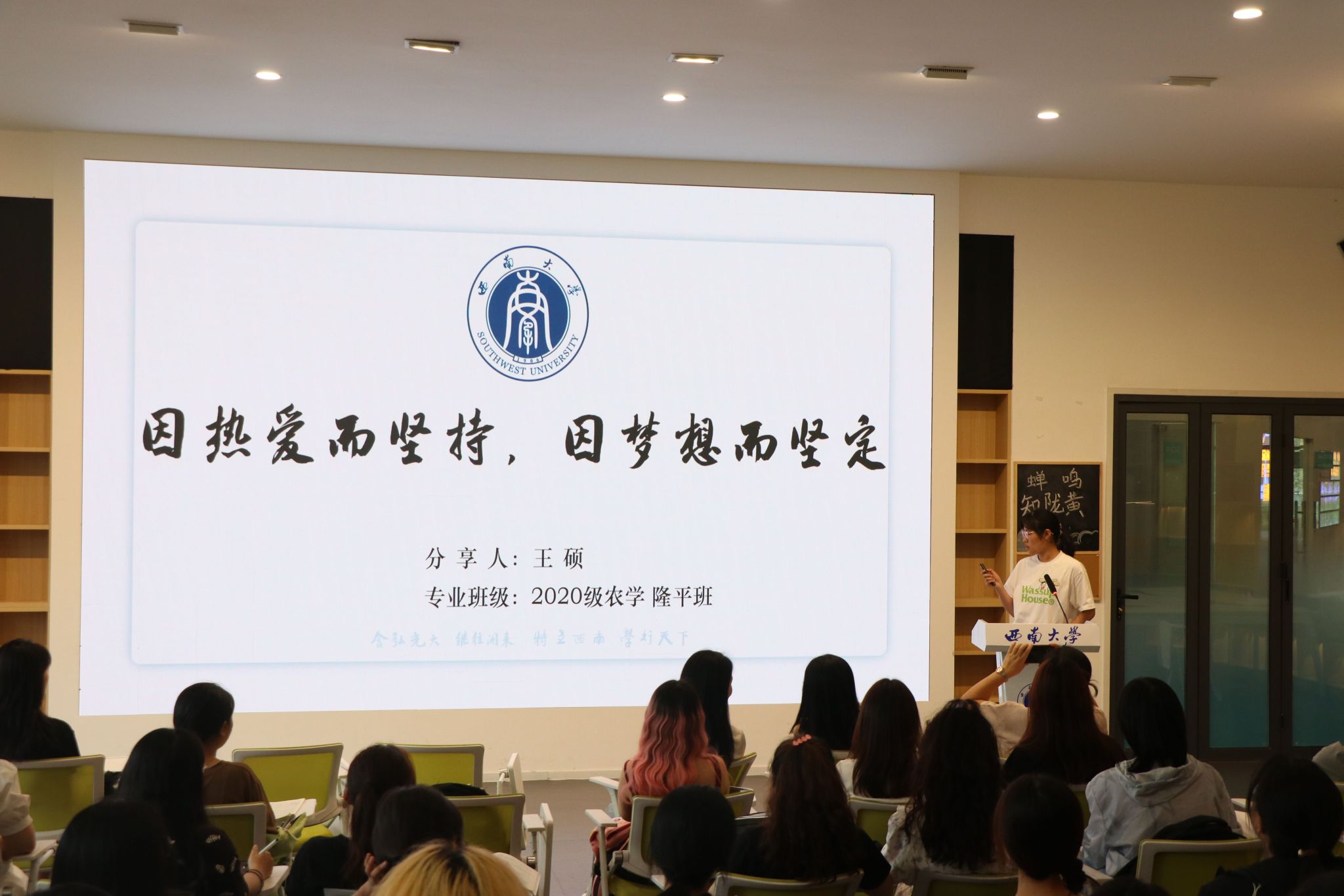 当前,全球农业正经历着深刻的变革,中国农业也在朝着更高产、更优质、更高效的方向迈进,这对我们农科类学生提出了更高的要求。恰好最近也学习了习近平总书记五四青年节对全国广大青年寄语精神,我们要脚踏时代征程,听从党的召唤,在各领域奋勇争先,奋力书写为中国式现代化挺膺担当的青春篇章。四位学长学姐的分享,不仅是对这一精神的响应,更是迈向未来的宣誓。这让我深刻认识到,我们新一代农科人正值青春年华,充满活力。当世事纷繁万端时,坚守内心信念;在激情澎湃的时刻,坚定前行的道路。在中华民族伟大复兴的道路上,必将铭刻下我们农科人坚定不移的步伐!