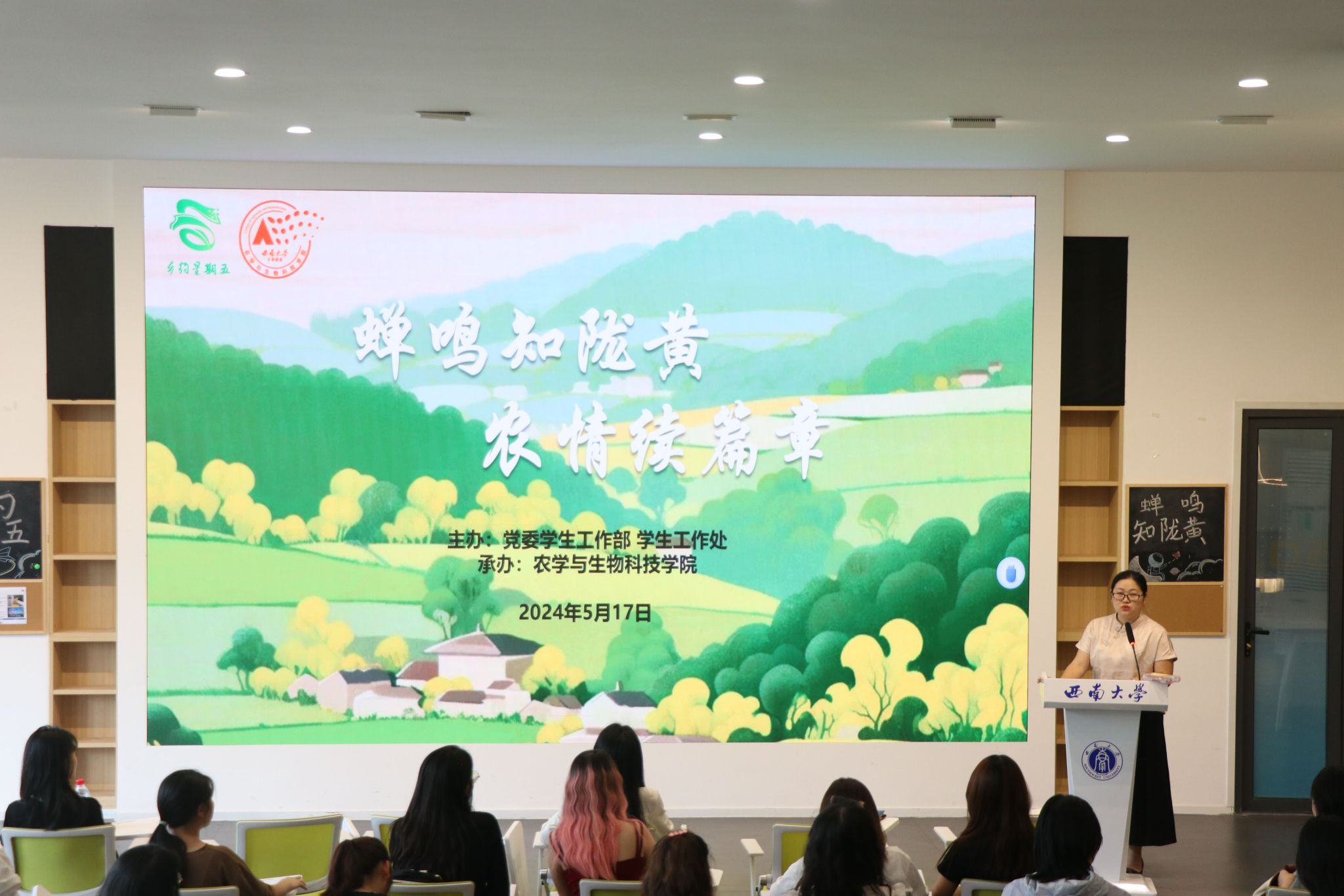 2024年5月17日下午,由PA视讯官网承办的第十五期“乡约星期五”学生成长沙龙在青李空间多功能厅A11成功举办。本次沙龙主题为“蝉鸣知陇黄,农情续篇章”。沙龙由PA视讯官网团委书记许莹竹老师主持,党委学生工作部学生思想政治教育科吴东倩老师和部分涉农专业研究生、本科生参与活动。
