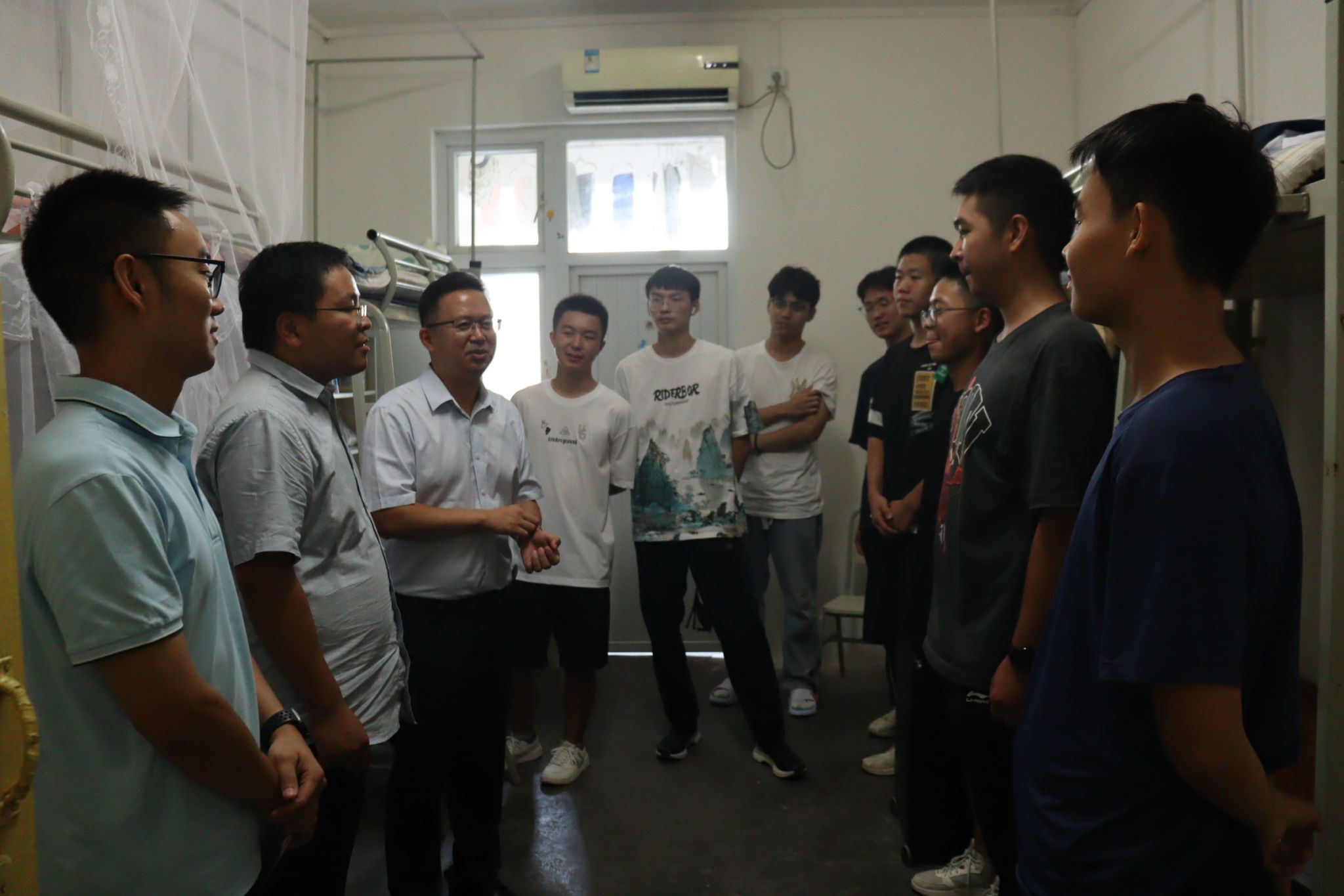 为进一步了解新生的思想状态和生活情况,加强师生交流,切实解决学生所遇到的实际问题,9月8日18:30,学院全体领导、辅导员及各班班主任前往新生宿舍,走访慰问2024级新生。老师们和同学们亲切交谈,询问入校后适应情况,帮助解决遇到的困难,解答同学们提出的疑问,并鼓励同学们要勇于挑战、树立理想、规划目标,健康、安全、充实地度过大学生活,叮嘱同学之间要相互帮助,积极调整自己的心态,尽快适应大学生活,以更加积极饱满的状态投入到新学期的学习生活中。