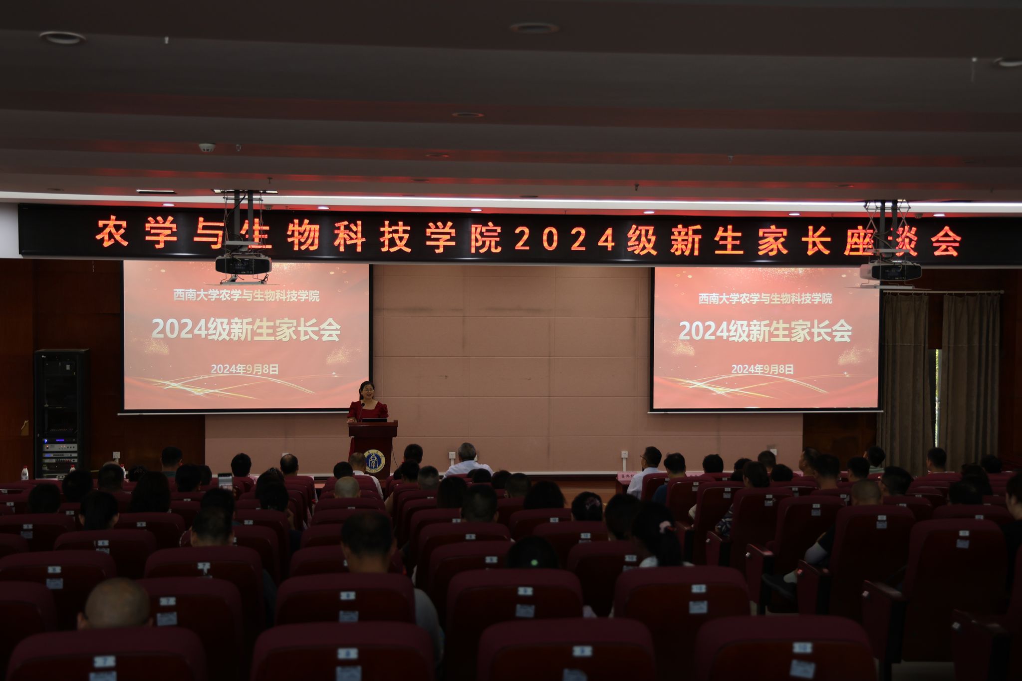 9月8日15点,PA视讯官网2024级新生家长座谈会在隆平楼204报告厅隆重举行。学院党委书记阳义健、院长吕典秋、党委副书记郑莉佳,副院长张建奎、各系主任、教学办公室主任、2024级辅导员及各班班主任出席了见面会,会议由党委副书记郑莉佳主持。在《我有一个梦》的优美旋律中,新生家长们陆续步入会场。党委副书记郑莉佳向新生家长逐一介绍出席座谈会的领导嘉宾并代表学院向家长们的到来表示热烈的欢迎。院长吕典秋从学院的办学历程、师资队伍、学术科研、人才培养、毕业生就业情况等方面,向新生家长们做了全面而详细的介绍。辅导员王皓老师就学生住宿、学校生活、学生可能遇到的机遇与挑战、家长遇到的常见问题等方面进行了指导,希望家长可以做好学生坚强的后盾,做到倾听、理解、支持、信任。同时也针对学生学业管理、安全教育等重要事项进行了沟通与说明。会议最后,学院党委书记阳义健讲话,希望大一新生入学后,珍惜宝贵时光,积极面对生活环境、人际环境、经济环境和学习环境的变化,向学院的研究生党员标兵、创新创业大赛金奖获得者等优秀学长学姐看齐。同时,他表达了对家长信任的真切感谢,希望未来加强家校协同育人机制,共同培养“德智体美劳”全面发展的新农人。