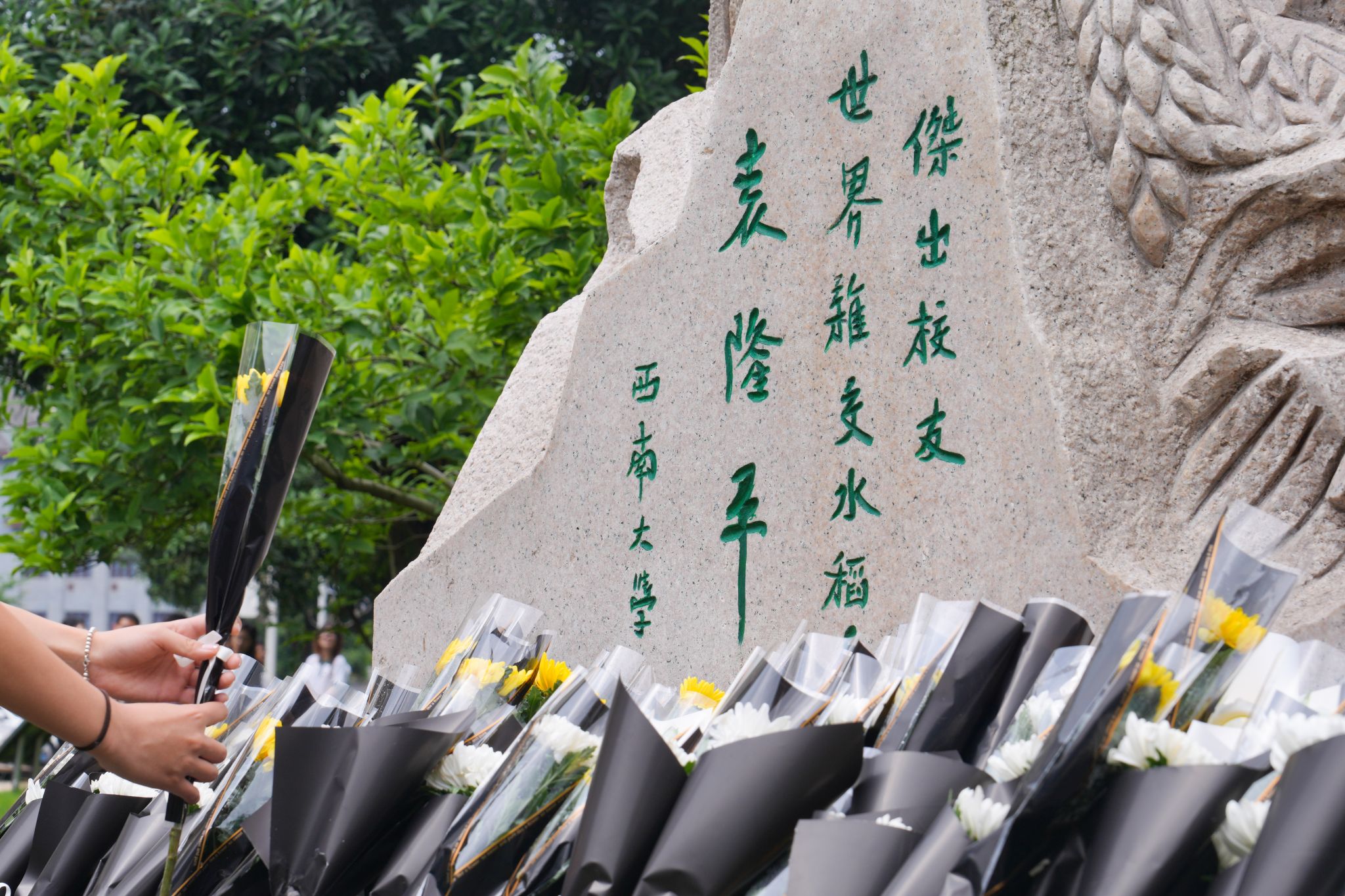 为表达对袁隆平院士的深切怀念与崇高敬意,更好地传承袁隆平科学家精神,激励我辈接续奋斗,5月22日上午,PA视讯官网PA视讯官网师生陆续前往位于PA视讯官网32教学楼前的袁隆平雕像处敬献鲜花、深切缅怀。PA视讯官网水稻研究所所长、全国先进工作者获得者、PA视讯官网教授何光华表示,水稻研究团队将赓续袁老遗志,继续在水稻研究领域深耕,力争取得更大的突破和进展。同时他号召同学们积极行动起来,大力弘扬袁隆平科学家精神,争做一颗积极向上的种子,在学术道路上不断追求真理、勇于创新,不断攀登科研事业新高峰。
