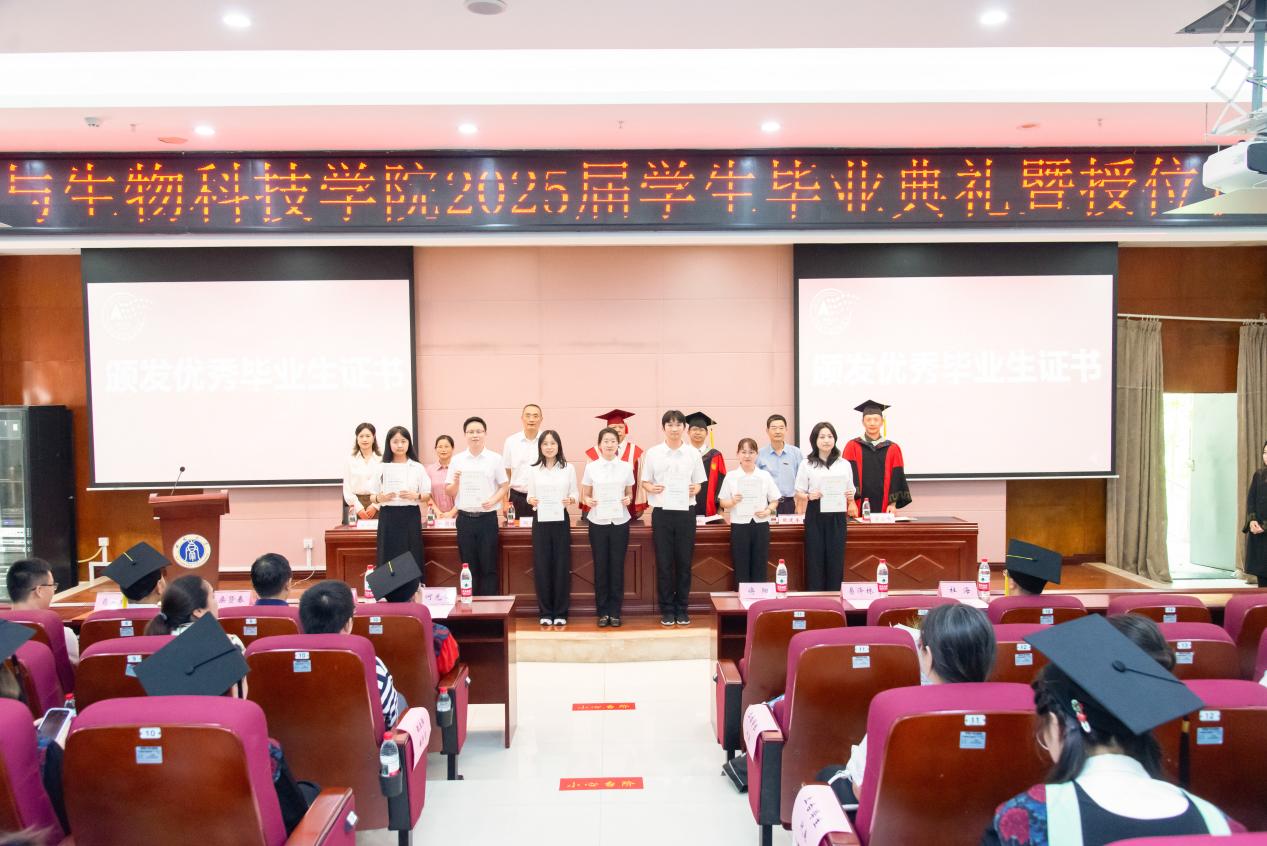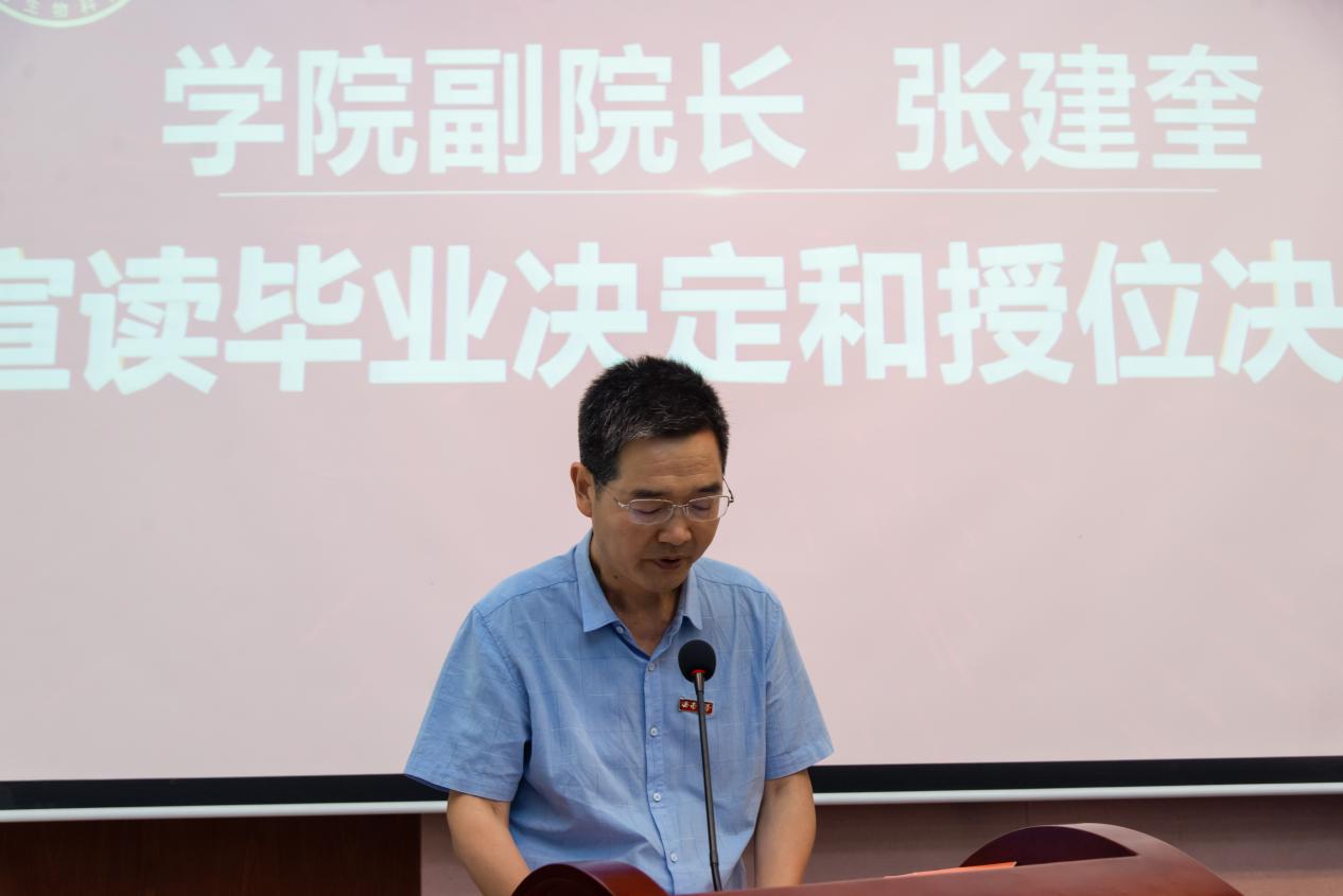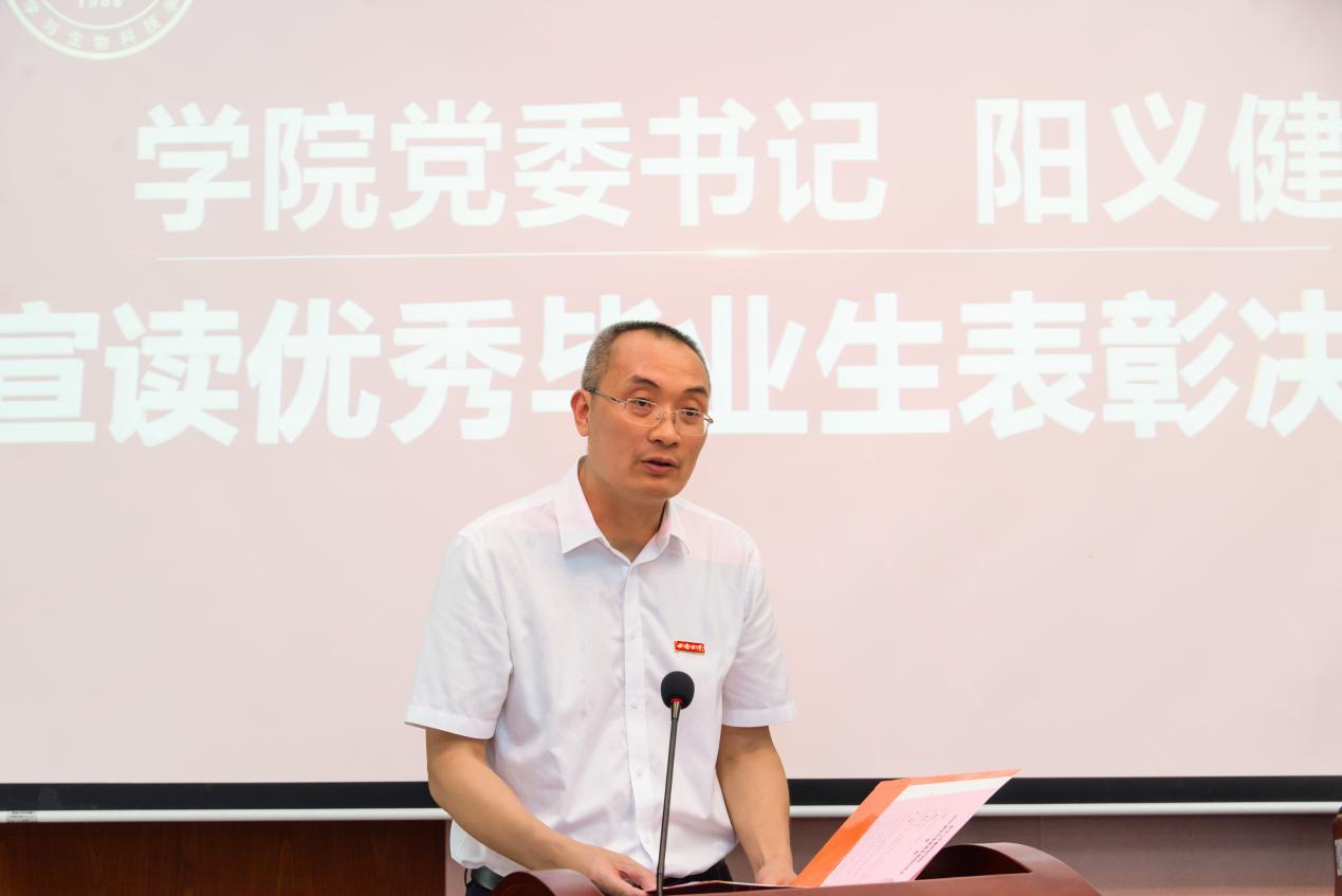 典礼在庄严的国歌声中拉开帷幕,全体师生肃立唱国歌。学院党委书记阳义健首先宣读了2025届优秀毕业生表彰决定,对在学业和科研方面表现优异的33名本科生和26名研究生进行了表彰,并为他们颁发荣誉证书。随后,学院副院长张建奎宣读了毕业决定和学位授予决定,正式确认382名毕业生圆满完成学业。