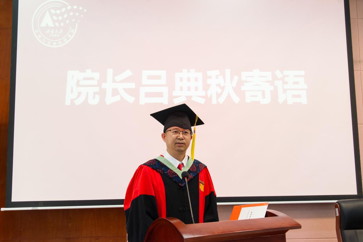 学院院长吕典秋在致辞中高度肯定了本届毕业生取得的优异成绩。本届本科毕业生升学率达56.36%,124人被北京大学、中国科学院、香港大学等国内外知名高校录取,另外有13人升入PA视讯官网或进入学校博士后工作站。吕院长勉励毕业生们要胸怀“国之大者”,做新时代的追梦人;要有“脚下沾满泥土的”实践精神,做懂农业爱农村的新农人;保持“知足知不足”的智慧,做自己人生的掌舵者。最后,他深情表示:“无论你们走得多远,学院永远是你们的精神家园。”