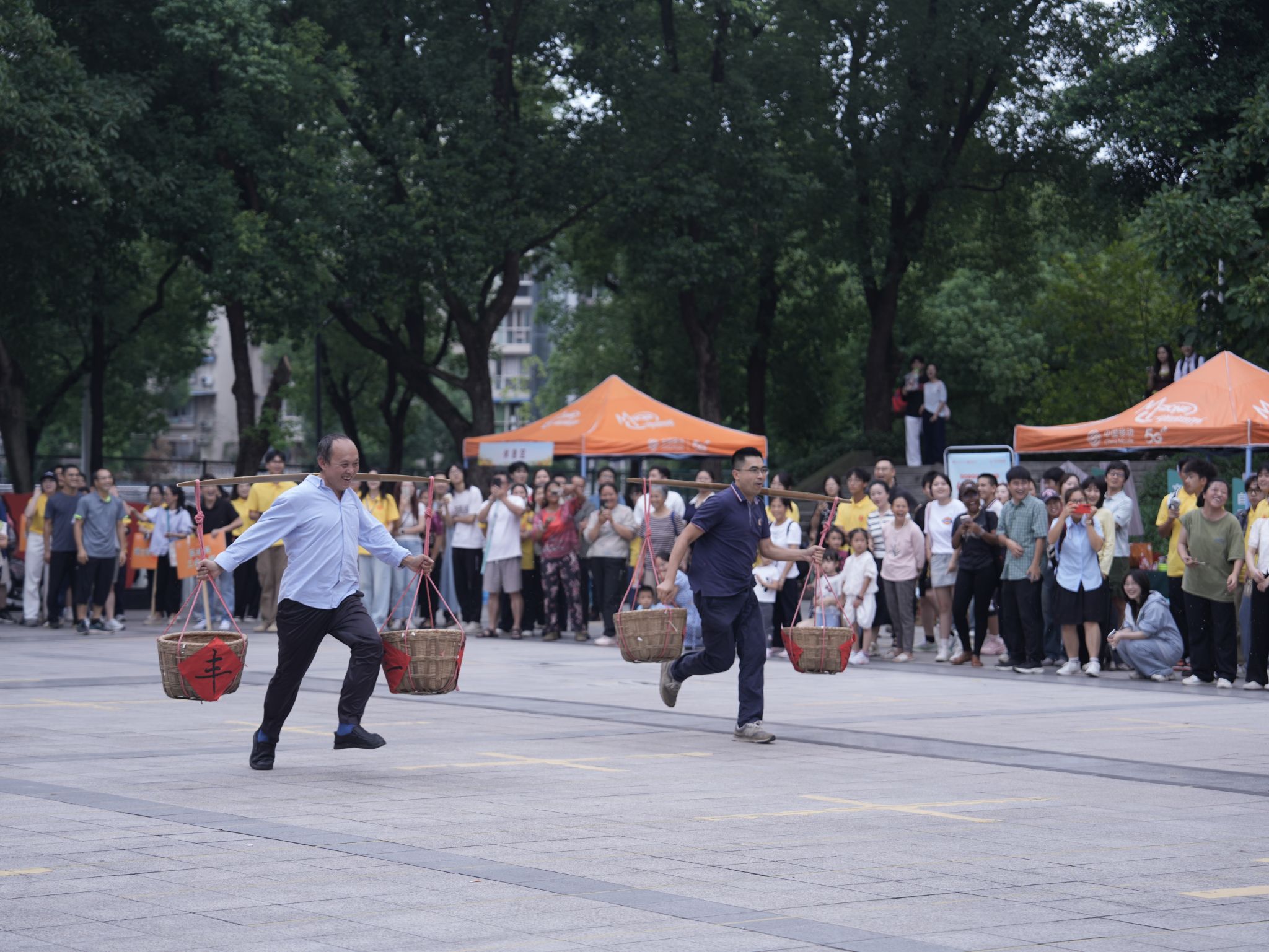 活动还设置了农事竞赛活动,涵盖团体赛和个人赛。在比赛现场,“颗粒归仓”“浑水摸鱼”“硕果累累”“辨识五谷”等充满农村农事特色的竞赛项目接连展开,随着计时器滴答作响,“浑水摸鱼”比赛拉开帷幕,队员们迅速弯腰伸手,滑溜溜的泥鳅和偶尔脱手的鲤鱼跃向空中,引得一片惊呼声。个人赛场地被参赛选手和观众围得里三层外三层,“辨识五谷”“不失圭撮”“花灯盏盏”等项目紧张而激烈地进行着。选手们各展其能,奇思妙想频出,彰显出西大学子的无限智慧与创造力。整个运动场欢笑声、加油声、喝彩声此起彼伏,气氛十分热烈。这些竞赛项目全部源于农村日常农事,展示农业生产的不易以及农民朋友日常活动的趣味性。参与的师生们通过亲自体验,既体会到劳作的艰辛,又分享了收获的喜悦,从而真正懂得珍惜粮食、热爱劳动,也让传统农耕文化在欢声笑语中活起来,增强了农科专业学子的认同感,坚定了他们对农科专业的自信。