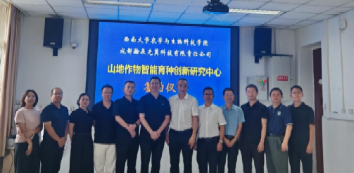 仪式上,双方签署了《山地作物智慧育种联合创新研究中心战略合作协议》,举行了“实践教学基地”揭牌仪式,并向张晗董事长颁发了客座教授聘书。未来,双方将深度融合企业智能装备研发优势与高校作物基础研究优势,推动传统育种向现代智慧育种转型,打通从课堂、实验室到产业一线的产教协同育人链条。