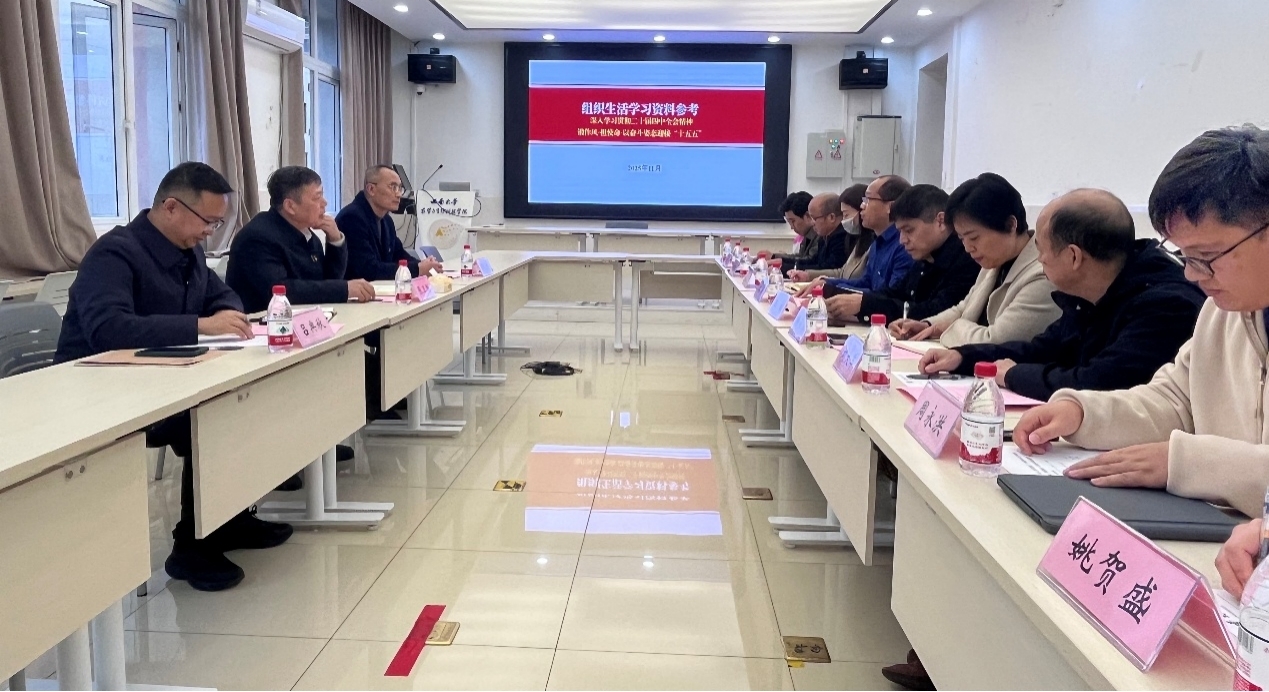 2025年11月17日,校党委书记张卫国来到我院教师第二党支部参加组织生活。学院党委书记阳义健、院长吕典秋陪同参加,党支部书记杜海主持。