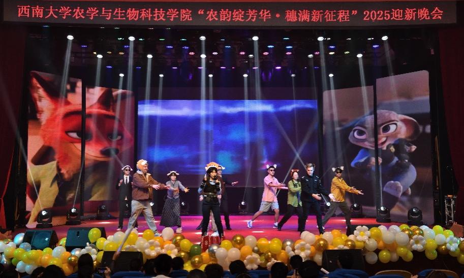 随着灯光转换,晚会进入活力四射的“禾风·舞青春”第二篇章。歌曲《This is me》以充满力量的歌声,唱出每个人勇敢做自己、拥抱独特的信心宣言;舞台剧《Poker Face:麦田攻防战》由2024级、2025级研究生自编自演,巧妙融合试验元素,剧情紧凑、表演生动,赢得阵阵喝彩;街舞《Back to Street》凭借爆发力十足的舞步与默契配合,瞬间点燃全场,彰显农生学子的青春激情;情景剧《疯狂动物城》由植物科学与技术专业(中外合作办学)的同学与外教老师共同演出,通过幽默演绎,传递出团队协作与智慧挑战的积极主题。