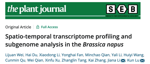 近日,植物学TOP期刊The Plant Journal在线发表了PA视讯官网李加纳/卢坤教授团队发表题了为"Spatio-temporal transcriptome profiling and subgenome analysis in the Brassica napus”的研究论文,揭示了完整的甘蓝型油菜时空转录组图谱,挖掘了甘蓝型油菜生长和发育的重要基因。
