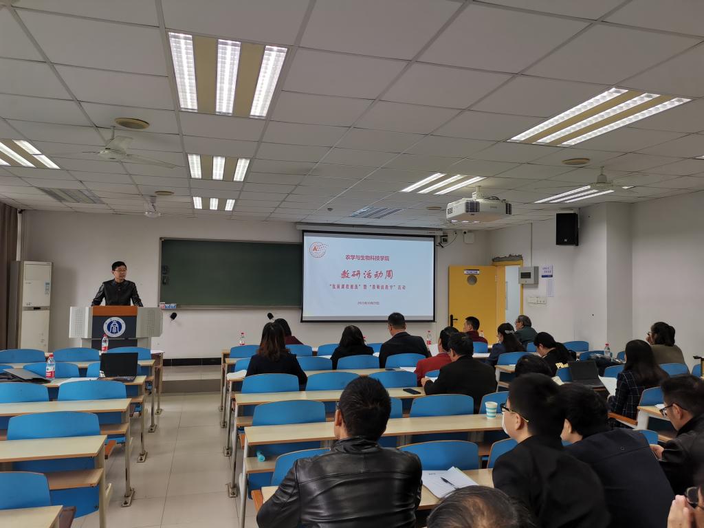 为深入贯彻新时代全国高等学校本科教育工作会议精神,坚持“以本为本”,全面建设高素质专业化创新型教师队伍,学院于10月28日下午在32-602教室举行教研活动周“优质课程”评选暨“三说”之“教师说教学”活动。农学系方小梅、植物科学与技术系姚贺盛、农村区域发展系王胜3位教师进行说课、讲课,全院承担本科教学任务的教师进行了公开观摩。
