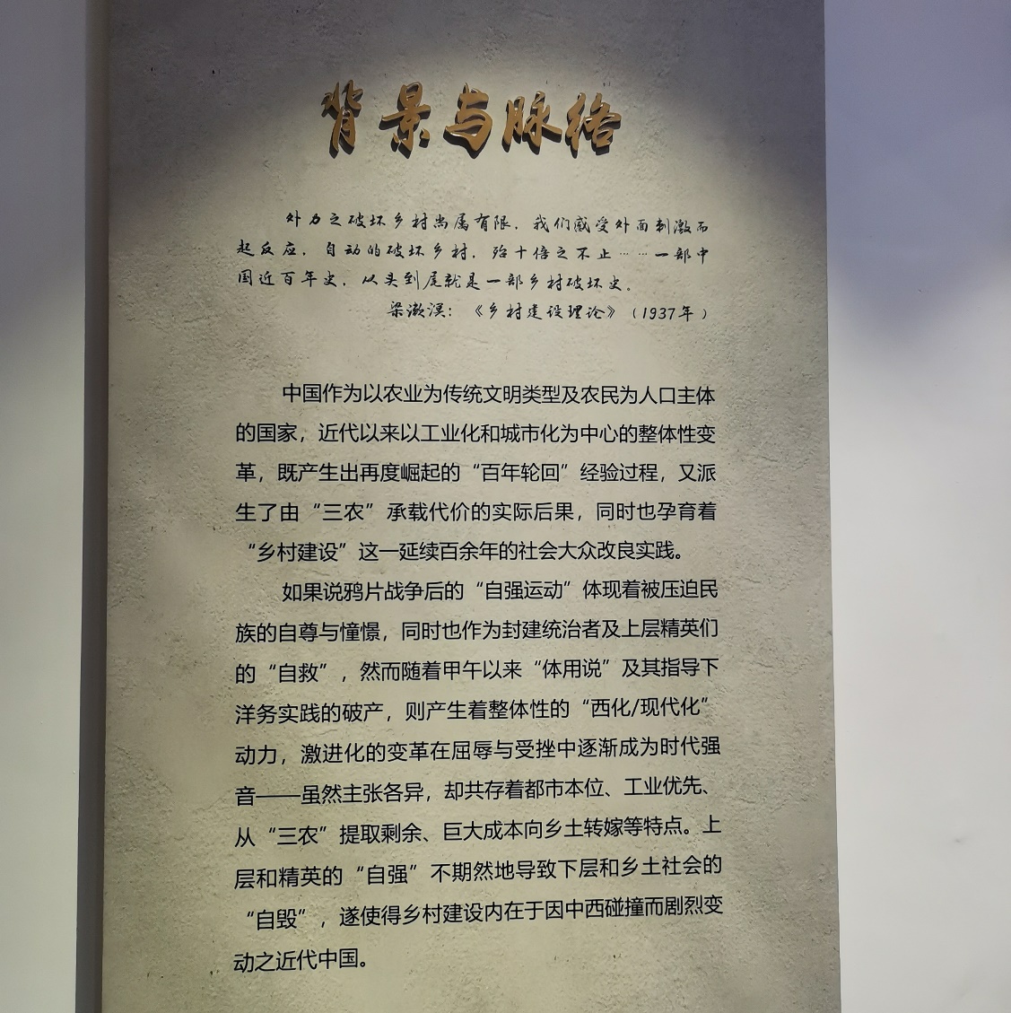 “乡村建设,实非建设乡村,而意在整个中国社会之建设,或可云一种建国运动。……外力之破坏乡村实属有限,我们感受外面刺激而起反应,自动的破坏乡村,殆十倍不止……一部中国近百年史,从头到尾就是一部乡村破坏史。”(梁漱溟《乡村建设理论》)