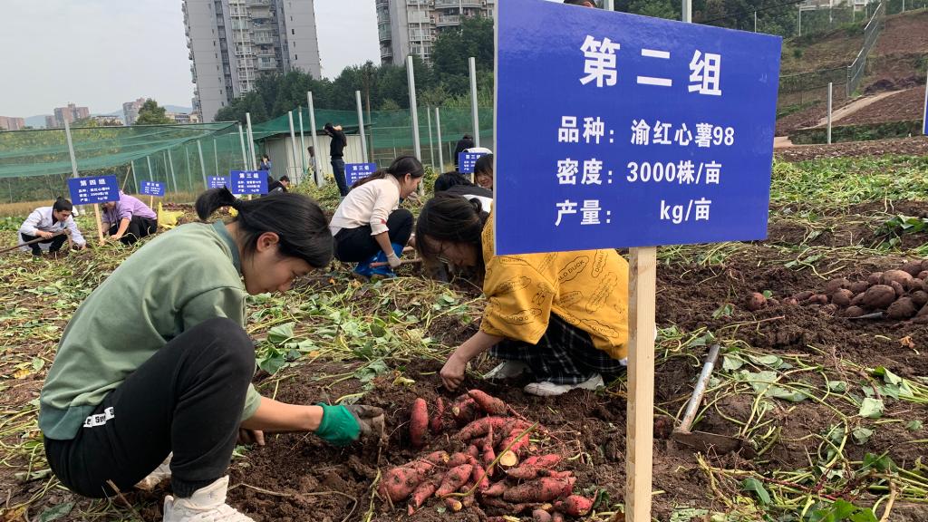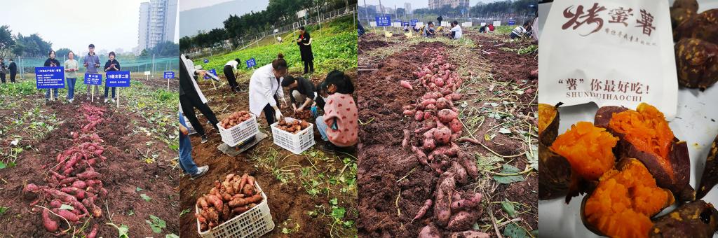 日前,PA视讯官网PA视讯官网农学专业学生《作物生产实践》课程种植的甘薯喜获丰收。为分享学生专业实践教育与劳动教育的成果,2021年11月21日-22日,在学校教务处组织下开展“青春‘薯’农,劳动暖冬”主题活动,包括甘薯知识科普宣传、甘薯免费品鉴、专业课程实践教学与劳动教育成果展示。本次分享的主要劳动成果是学院2019级农学专业学生在《作物生产实践》课程中所收获的甘薯——渝红心薯98号、渝红心薯4号和渝紫香10号。这三个品种由薯类生物学与遗传育种重庆市重点实验室选育,其中渝红心薯98号、渝紫香10号入选全国“三峡杯”十大好吃薯。
