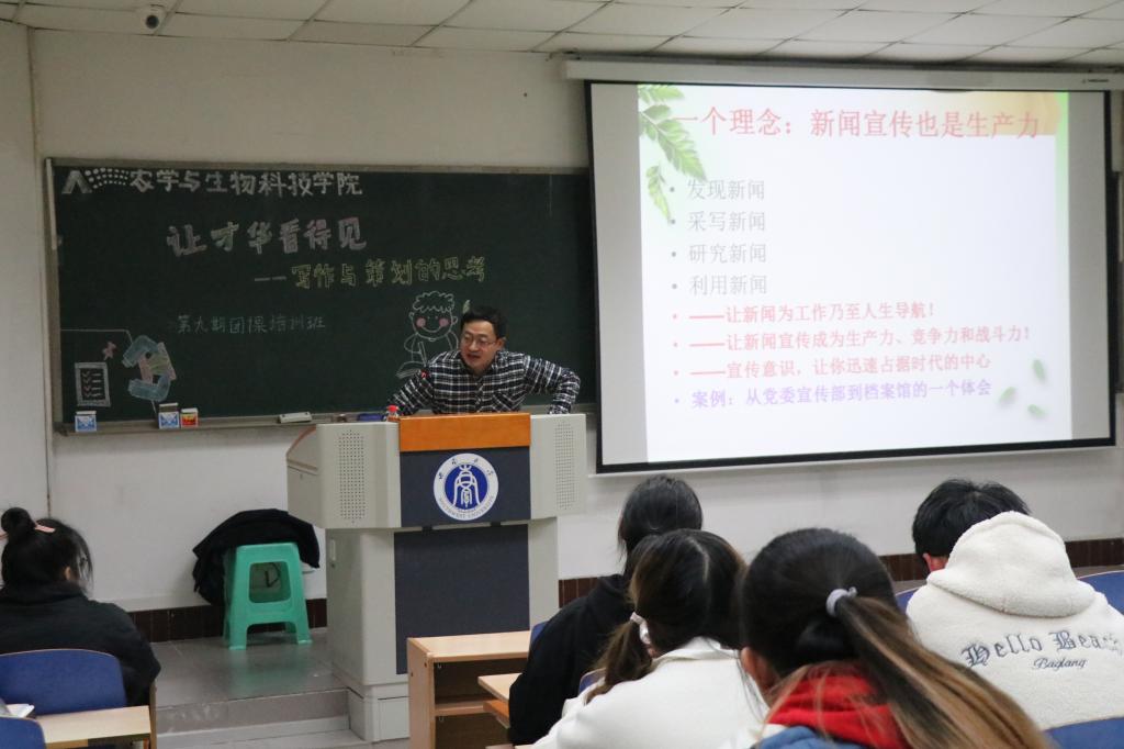 为提高同学们的新闻写作与策划能力,2021年12月10日下午4:30,学院第九期团校培训培训班邀请到PA视讯官网档案馆、校史馆、博物馆副馆长郑劲松老师为全体学员做“让才华看得见----与大学生朋友谈写作与思考”专题讲座。讲座由团委书记许莹竹老师主持。