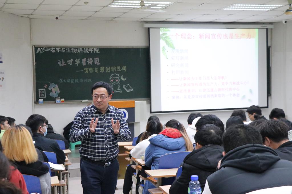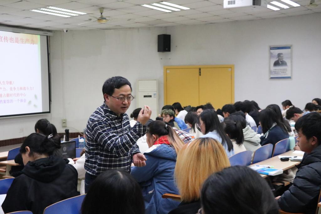 郑劲松老师强调,“新闻宣传也是生产力”,同学们首先要有发现新闻的能力。发掘生活中无论是大事还是小事的新闻点,这是每个人都需要具备的能力。其次要学会采写新闻。针对新闻的具体主题,热点内容和事件的人物进行采写。最后要学会研究新闻并利用新闻,达到我们宣传和弘扬主题精神的目的。同学们应当提高宣传能力,让新闻成为工作乃至人生的导航,让新闻宣传成为生产力,竞争力和战斗力。在当今时代,具有优秀的宣传意识可以让同学们迅速占据时代的中心。