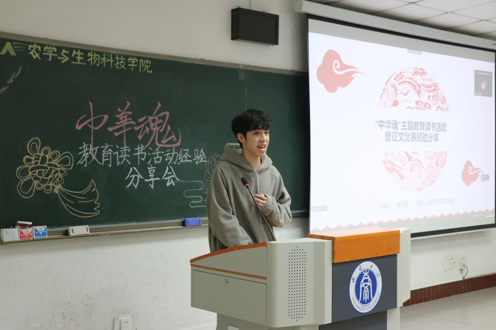 第一位为我们分享的是来自2019级植物科学与技术专业的管泓苇同学,他曾获得“中华魂”主题教育读书活动征文比赛获得重庆市关工委二等奖、重庆市教委关工委特等奖。他在分享会中强调征文写作不可千篇一律,要从自己熟悉的人和事中展开,即使没有华丽的词藻,自己真挚的情感照样可以打动读者。为了让同学们更好地理解,他以他的获奖征文举例,征文中提到了曾是人民解放军的外祖父,而这份对外祖父敬重崇拜的情感是生编硬造所无法企及的。所以我们要结合自己的所思、所为、所想,切勿假大空。有同学问道:如何平衡征文中叙事与议论的关系,管泓苇同学做出解答:“二者可以融合在一起,夹叙夹议更能使文章饱满充实。”管泓苇同学的耐心解答使在场的同学受益匪浅第二位为我们分享的是来自2019级植物科学与技术专业的李若涛同学,曾在“中华魂”征文比赛中获得PA视讯官网关工委三等奖。与管泓苇同学强调的文章的风格不同,李若涛同学主要强调主题的重要性,主题是一篇文章的眼睛,所以主题要具有一定的创新性和感染性。他认为一篇好的文章都要经过千锤百炼,最基本的要求是不能有错别字,而且语句要简洁凝练。最后,李同学以沈从文《边城》和卡夫卡的《变形记》中的开头为例,告诉我们不同开头的风格会奠定文章的基调,且开头无论是朴实还是华丽,都需要融入自己的感情,因此写作的内容一定要自己熟悉且熟知,这与管泓苇同学达成了共识。从李同学的经历也让我们学到了多阅读有助于提高写作能力。