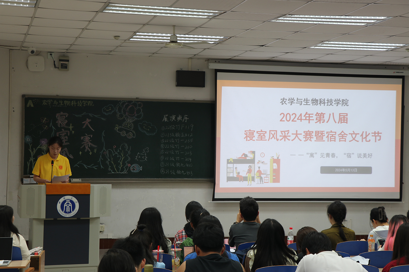 为加强寝室管理,打造干净舒适的寝室环境,营造良好的生活学习氛围,培养同学们自治自律的优良习惯,5月13日下午,学院在32教513教室举办“‘寓’见青春,‘宿’说美好”寝室风采大赛。2022级辅导员白祯老师,2022级、2023级班级生活委员、寝室长,参赛寝室成员参加活动。
