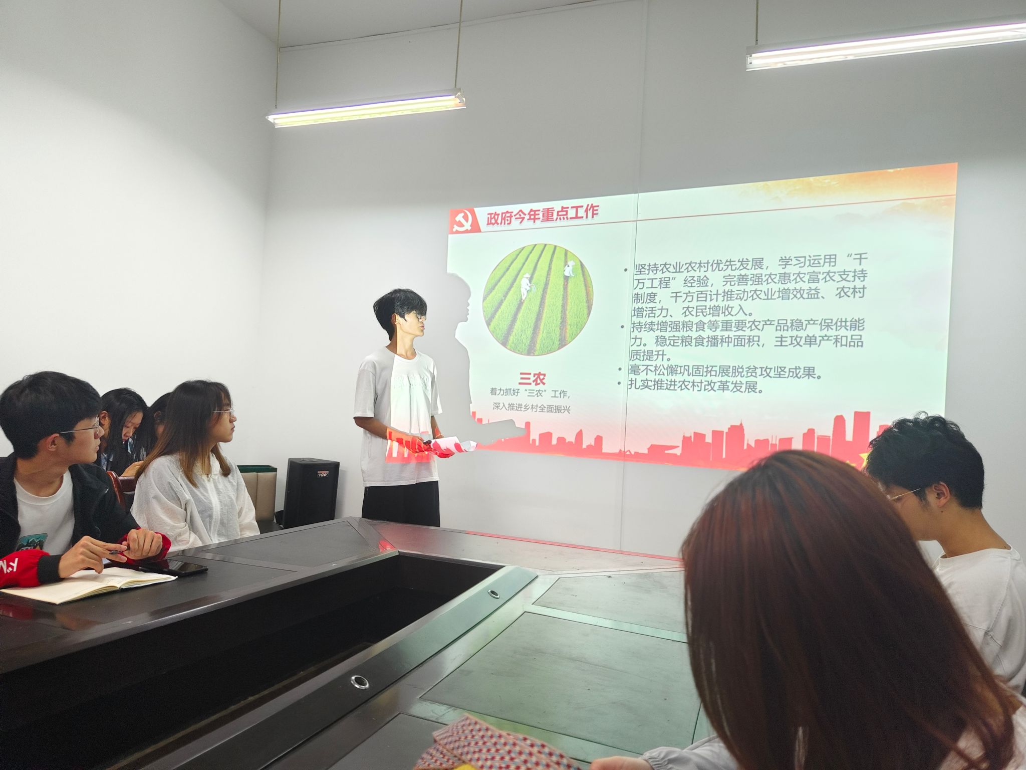 会议开始前,同学们自主学习2025年政府工作报告。全体成员认真研读报告内容,梳理重点,对国家过去一年的工作成果以及新一年的工作规划有了初步的认识与思考。在自主学习过程中,同学们不仅了解了国家在经济发展、民生保障、科技创新等方面取得的显著成就,还对报告中提及的农业农村领域的新政策、新举措格外关注,不少同学结合自身专业,在报告中寻找与所学知识相关的要点,为后续深入研讨做足准备。