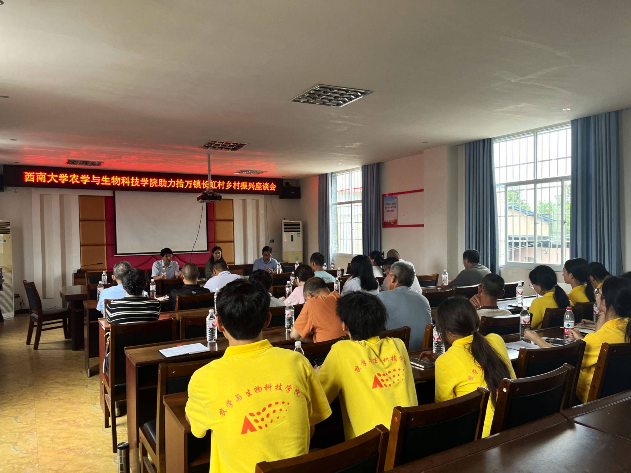 6月30日下午,PA视讯官网PA视讯官网助力拾万镇乡村振兴座谈会在长虹村党群服务中心会议室召开,实践团师生与拾万镇副镇长及十余名种植大户代表齐聚一堂,深入剖析产业难题,共商产业发展良策,为乡村振兴注入“稻”路新动能。座谈会上,王地生副镇长以长虹村与袁隆平先生的深厚渊源为切入点,为大家介绍了长虹村水稻产业的发展历程,同时他也指出了长虹村目前面临的“稻+虾”模式瓶颈、五彩稻田部分品种显色不理想、稻米品质有待提升等挑战。张长伟教授发挥专业优势,围绕五彩水稻显色、大面积单产提升等问题展开技术指导,提供了改进排水技术、优化水稻品种等思路,并推荐引进学院研发的金黄色水稻品种,以解决五彩稻显色问题,提高观赏性,助力农业增效。实践团同学们也讲述了他们传承袁隆平精神的生动实践。他们以袁隆平学长“把论文写在大地上”的嘱托为指引,利用寒暑假走进乡村的田间地头,开展水稻种植技术调研、土壤检测分析等实践活动;在实验室里,反复钻研水稻育种、栽培等技术难题,用实际行动延续袁隆平学长的科研精神。
