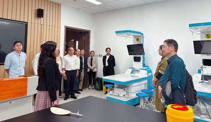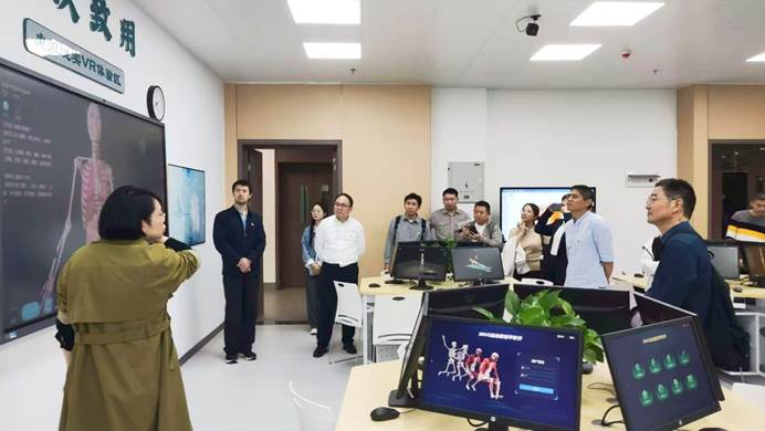 在刘茜院长和张建奎副院长的带领下,学院植物科学与技术系杜海主任、生物化学课程组负责人王楠、植物生理课程组教师代表刘大军、植物科学与技术(中外合作办学)专业共课课程组负责人张凯和共课教师万华方、肖前林、曾健晏、蒋锐、张媞、向洁,以及遗传学课程教师代李超峰,参观了基础医学院的现代化办学条件和科研设施。主要参观内容包括虚拟仿真实验室、显微镜形态实验室、人体机能学实验室、人体大体形态学实验室等,这些先进教学设施和设备给大家留下了深刻印象。通过交流学习,大家对现代化、数字化、智慧化教学有了更直观的了解,也对如何将党建工作与教育科研工作相结合有了更深入的思考。