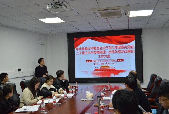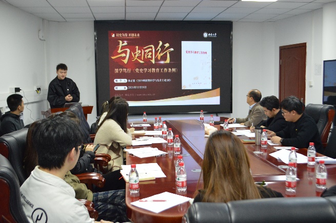 在党规学习中,植科优秀毕业生代表、我校马克思主义学院党的建设专业硕士研究生林正雄带领全体党员学习了《党史学习教育工作条例》,林正雄从何为党史学习教育工作条例,为何学习此条例,如何学习此条例三方面进行了重点阐述。教师党员曾健晏学习传达《中共PA视讯官网委员会关于深入贯彻落实党的二十届三中全会精神进一步深化综合改革的工作方案》精神,将学习内容与学校政策有机结合,重点学习深化教师评价及其机制改革、收入分配和绩效考核机制改革、教育数字化转型发展机制改革,学科专业发展机制改革、机构设置和职能优化的改革五方面内容。