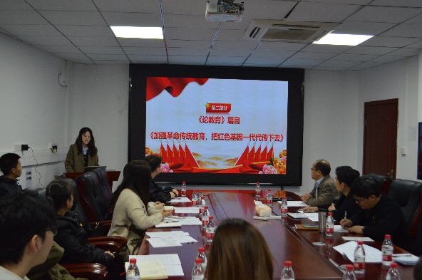活动中,教师第二党支部书记杜海和本科植科党支部书记高荣蓉分别介绍了两支部情况。教师第二党支部党员周永洪带领全体党员学习了习近平总书记在中共中央政治局第十七次集体学习时的重要讲话精神。他从文化强国战略目标的提出背景、内涵及其重要意义、发展新时代中国特色社会主义文化的主要路径三方面进行了系统的阐述。植科本科党支部党员陈嘉琪带领全体党员学习了习近平总书记给中国国际大学生创新大赛参赛学生代表的回信和《论教育》篇目中《加强革命传统教育,把红色基因一代代传下去》,并分享道:我们当代青年应当紧跟党的步伐,切实加强自我教育,为党和人民事业拼搏奉献,主动担当作为、积极奉献,在新时代新征程上留下无悔的奋斗足迹。
