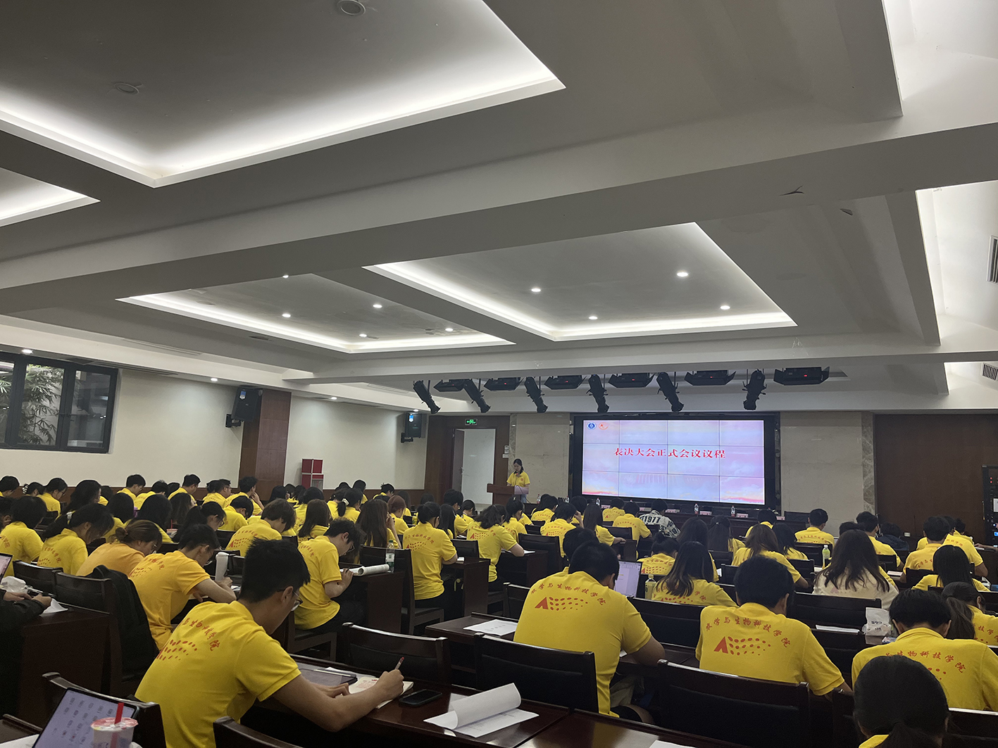 在《PA视讯官网校歌》声中,大会圆满闭幕。第七届学生委员会第一次会议随即召开,团委书记许莹竹老师向各位学生委员介绍学生委员会工作内容和委员履职要点。她寄语各位委员认真履职尽责,全心全意服务同学,为学院学生会、研究生会工作开展建言献策,助力学院团学事业蓬勃发展。