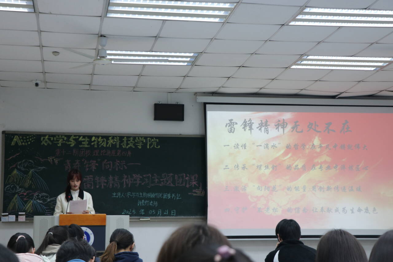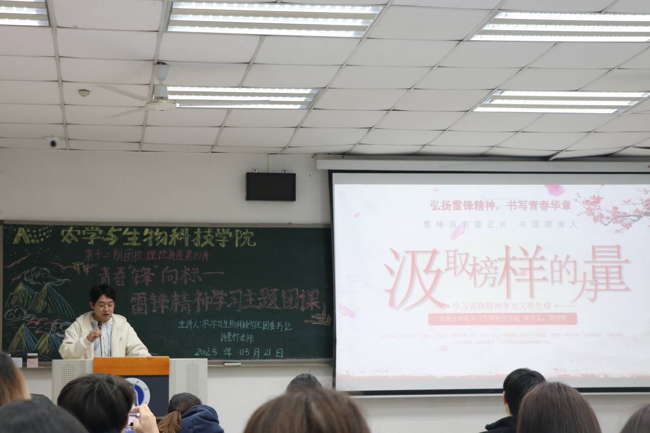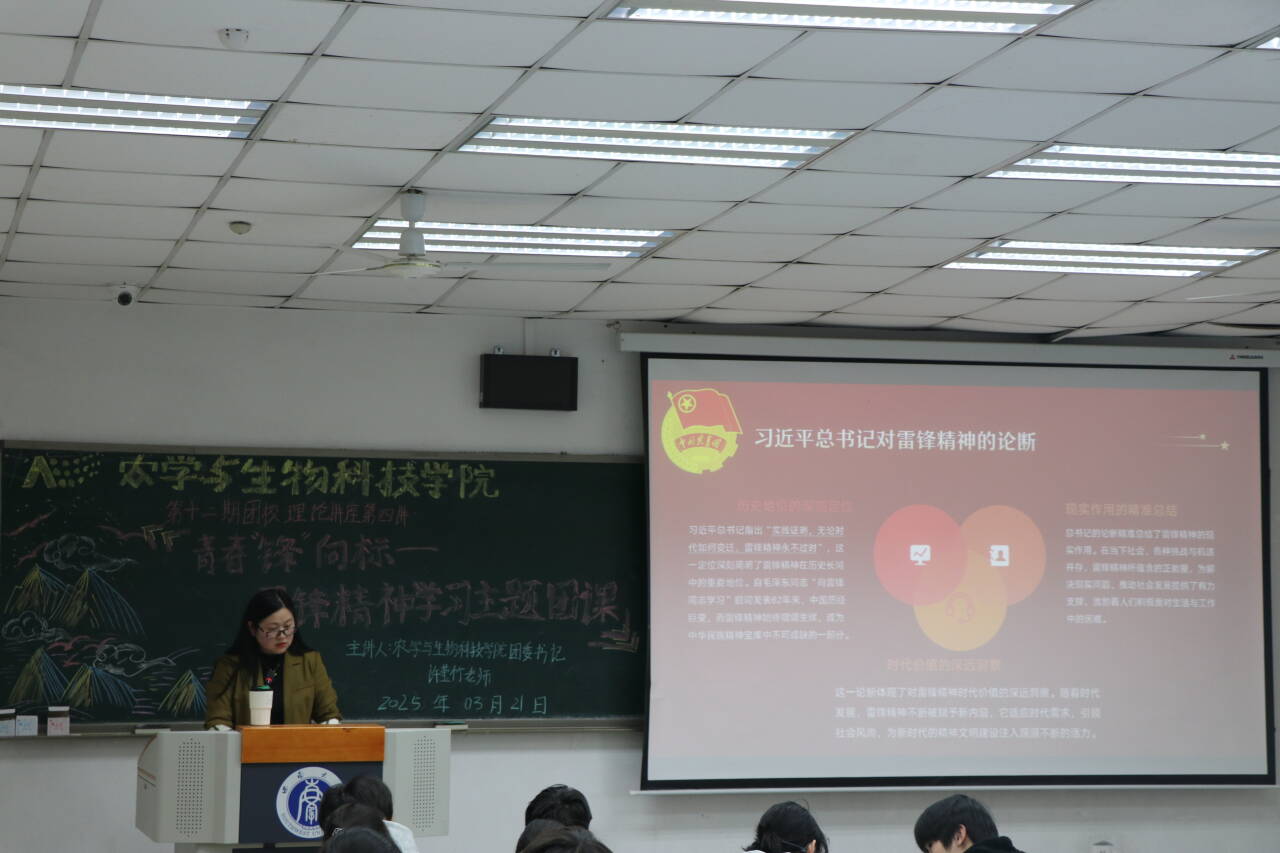 为深入贯彻习近平总书记关于弘扬雷锋精神的重要论述,深刻把握雷锋精神的时代内涵,让学雷锋在青年中蔚然成风,引领广大青年团员传承红色基因,汲取奋进力量,共青团PA视讯官网PA视讯官网委员会于2025年3月21日星期五在32教312教室开展了PA视讯官网PA视讯官网第十二期团校理论讲座第四讲。本次团校特别邀请学院团委书记许莹竹老师,带来“赓续雷锋精神,砥砺奋进力量”主题理论讲座。