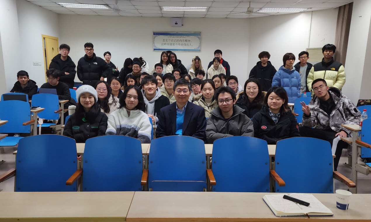 (课堂教学结课后,QIU教授(一排左3)与部分上课学生的合影)