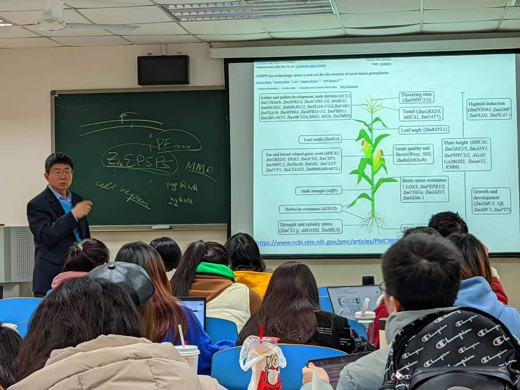 (QIU教授在32教学楼为2021级植科学生授课)
