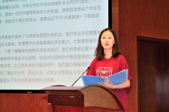 So under the guidance of the teachers from both SWU and MSU, and with the encouragements from our senior students, I finally had the opportunity to experience the essence of “No Pain No Gain”. This is my third year of studying in this major. When I look back on the past, I feel rewarding; and when I look forward at the future, I feel confident. This joint program precisely combines learning plant science and learning English together. In the future, we can not only study in China, but also enjoy international resources in the United States.