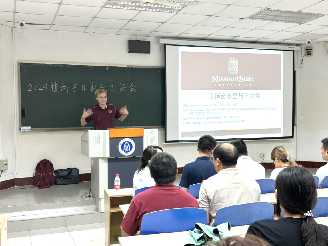 此次见面会引起学院高度重视,众多老师和全体新生积极参与。参会人员有:学院副院长张建奎;植科系的张凯、梅家琴、宋佳明、金丹、曾健晏等10多位教师;中外合作办学办公室刘志斋、张溢颖、吴雨桐老师;MSU教师代表Joshua;全体新生班主任荐红举、王凡龙、向洁和庄慧老师;以及2024级全体植科专业新生。主持人由张媞老师担任。