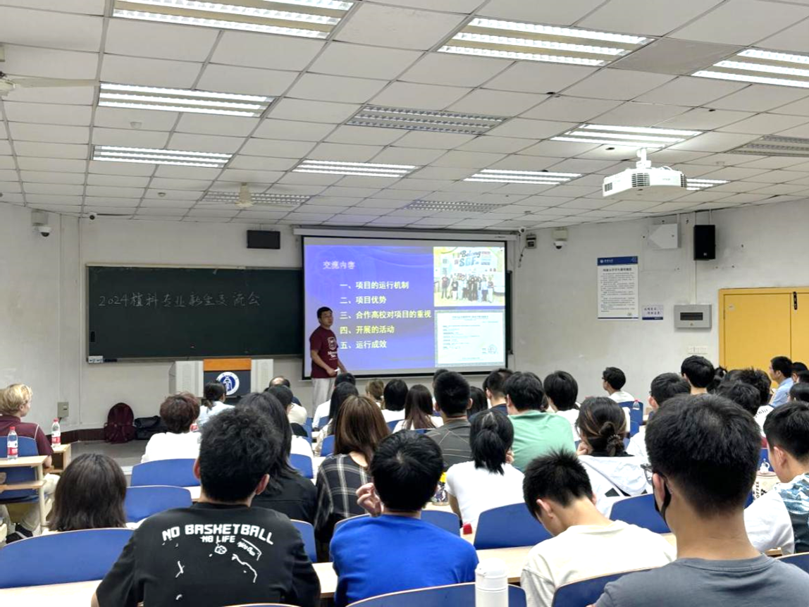 植物科学与技术(中外合作办学)专业(以下简称“植科”),是学院乃至学校培育新时代国际化新农科人才的重要平台。2024 年 9 月,在重庆的炎热夏日里,第六届植科专业新生迎来了他们的入学季。为帮助新同学更好的了解学院及专业,9 月 11 日下午,2024 级植科专业新生交流会在 32 教学楼414 举行。